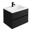 De badkamermeubel is afgewerkt in een mat zwarte kleur, wat zorgt voor een mooie effect in de badkamer. Het ontwerp is modern, minimalistisch en tijdloos. De badmeubel kan daarnaast zijn plek goed vinden in verschillende soorten stijlen badkamers, van modern tot landelijke badkamers. De wastafel is gemaakt van keramiek en zorgt met een mat witte afwerking voor een mooie finishing touch.