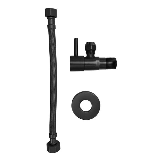 Hoekstopkraan 1/2x3/8 met flexibele aansluitslang nylon 1/2x3/8 30 cm mat zwart